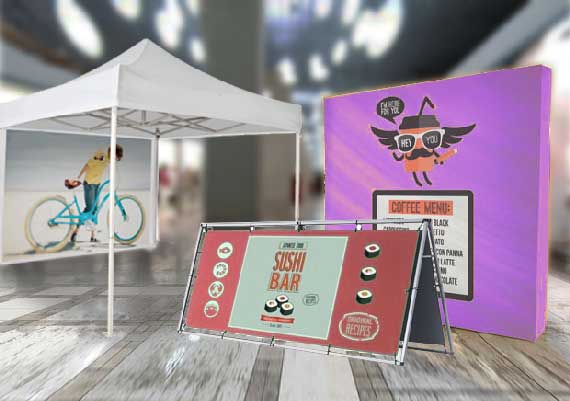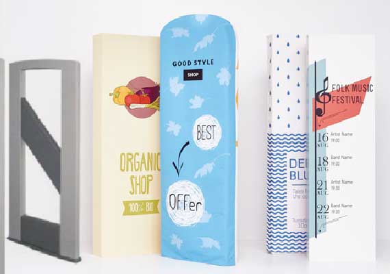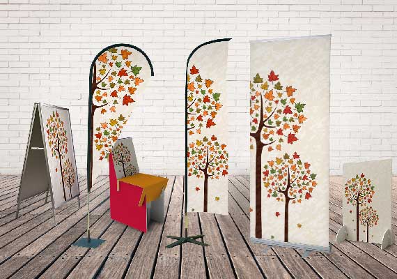 Roll up. Totem, Espositori da banco o da terra, Vele a bandiera o a goccia, frame in tessuto, expo banner, supporti fieristici, coperture antitaccheggio, desk e sedute promozionali, packaging, accessori per la ristorazione, ...