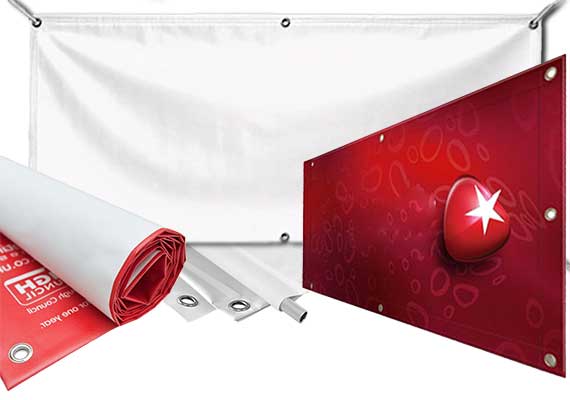 Striscioni pubblicitari o segnaletici con occhielli o asole, rinforzati e/o bifacciali
